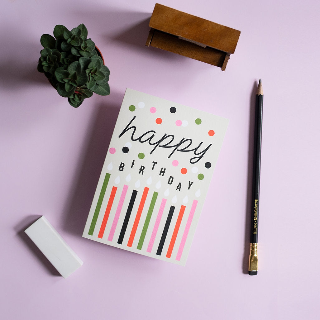 This greeting card exudes a celebratory vibe, making it perfect for birthday wishes.